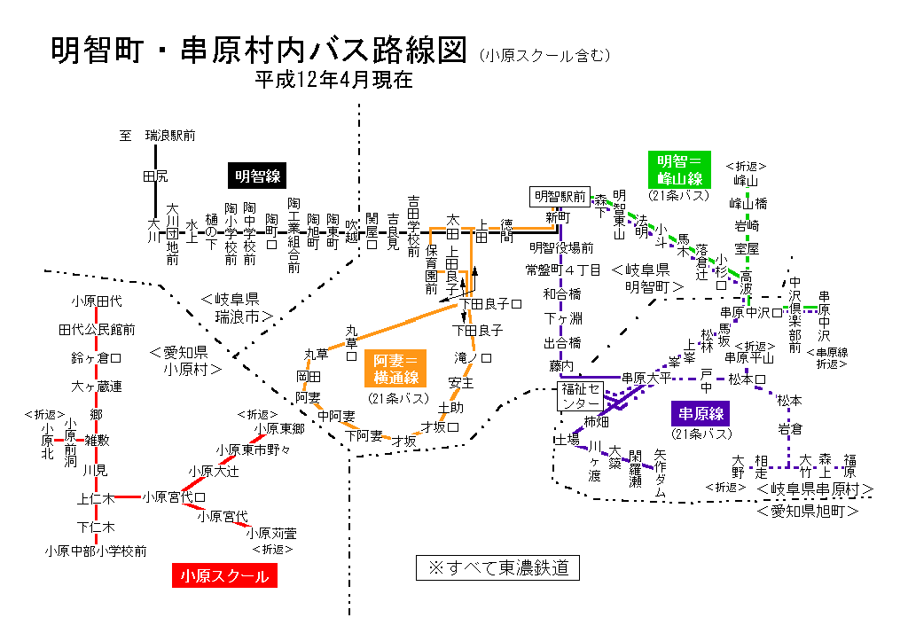 明智町・串原村内 バス路線図(平成14年7月19日まで)