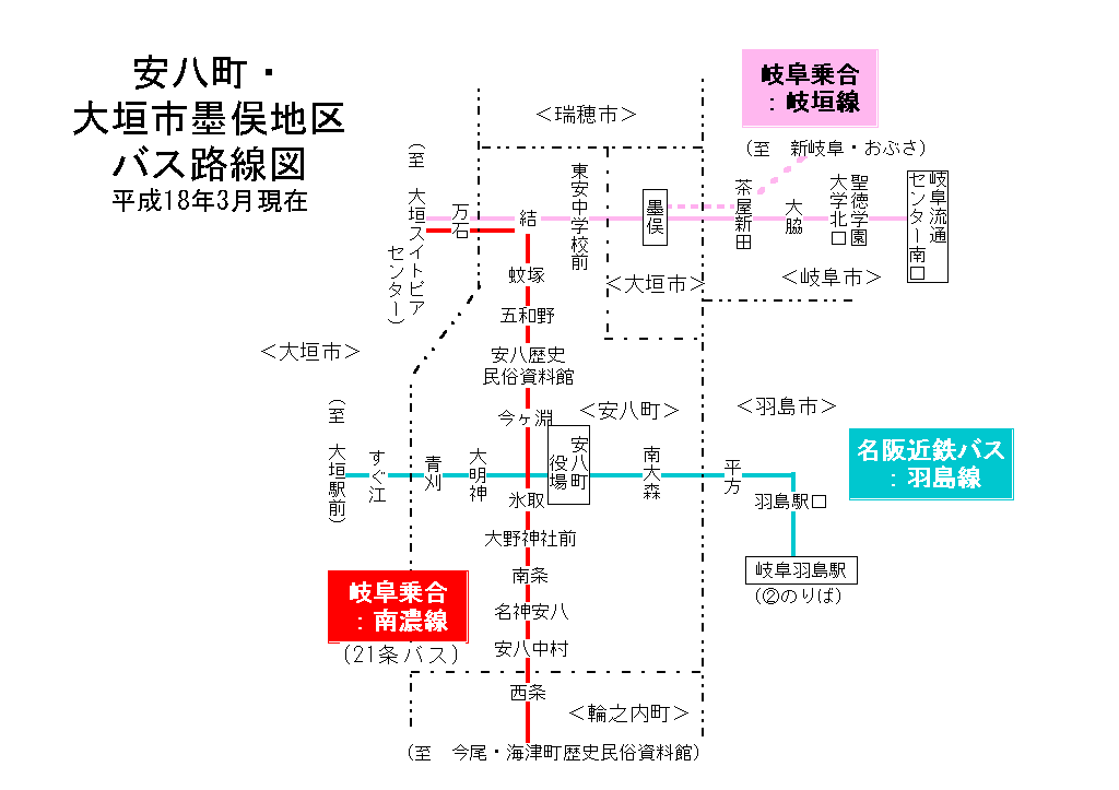 安八町・大垣市墨俣地区 バス路線図(平成18年3月31日まで)