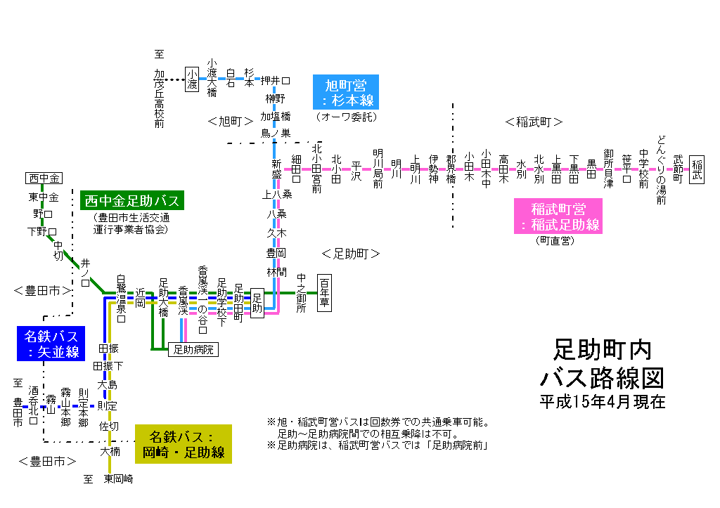 #03/03/27より、西中金足助バスが「足助病院」に乗り入れ。