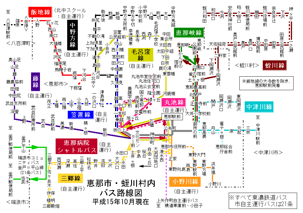 恵那市・蛭川村内 バス路線図(平成15年11月30日まで)