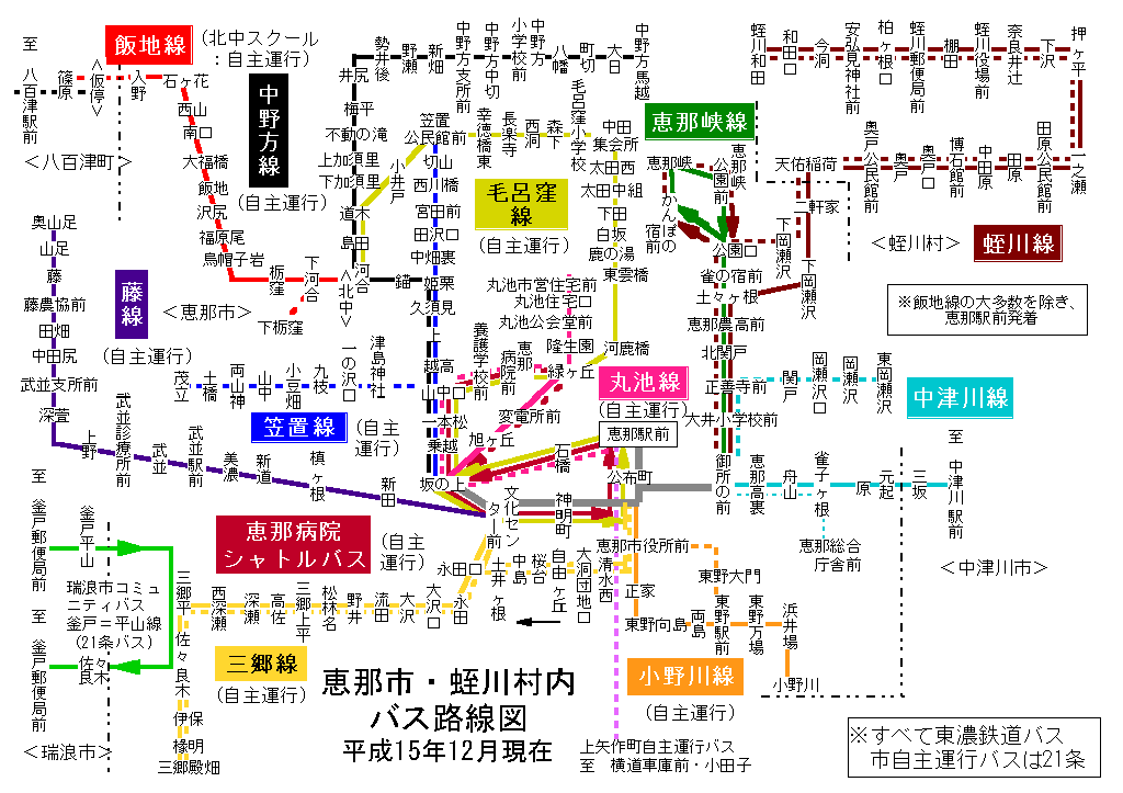 恵那市・蛭川村内 バス路線図(平成16年2月29日まで)