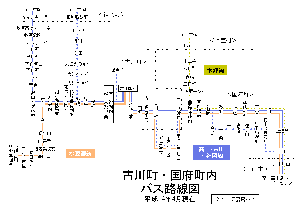 古川町・国府町内 バス路線図(平成16年1月31日まで)