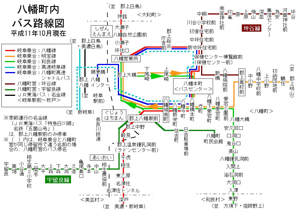#岐阜乗合:高速岐阜線が99/10/01より八幡今町にも停車。