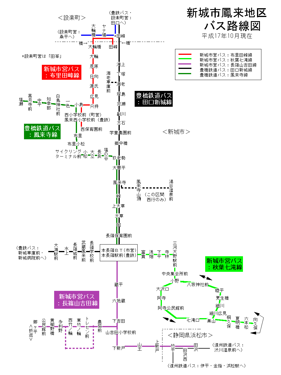 平成17年9月30日以前の鳳来町路線図はこちら