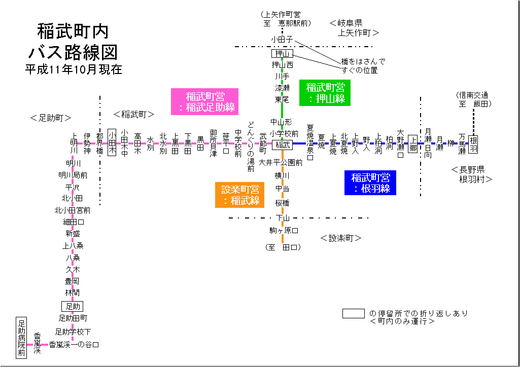 #99/10/01より、名鉄バス全線が稲武町営バスに移管。