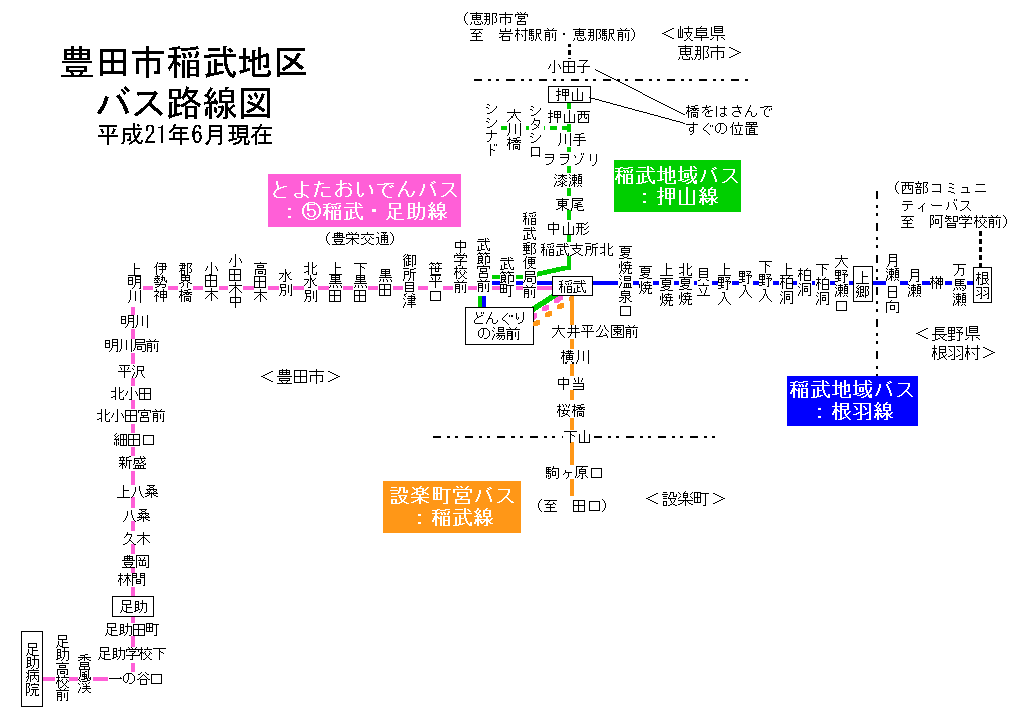 豊田市稲武地区 バス路線図(平成22年3月31日まで)