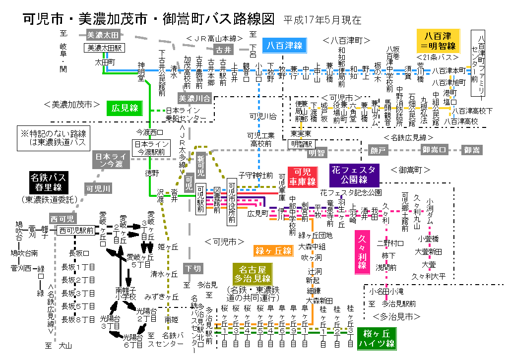 可児市・美濃加茂市・御嵩町内 バス路線図(平成18年1月15日まで)