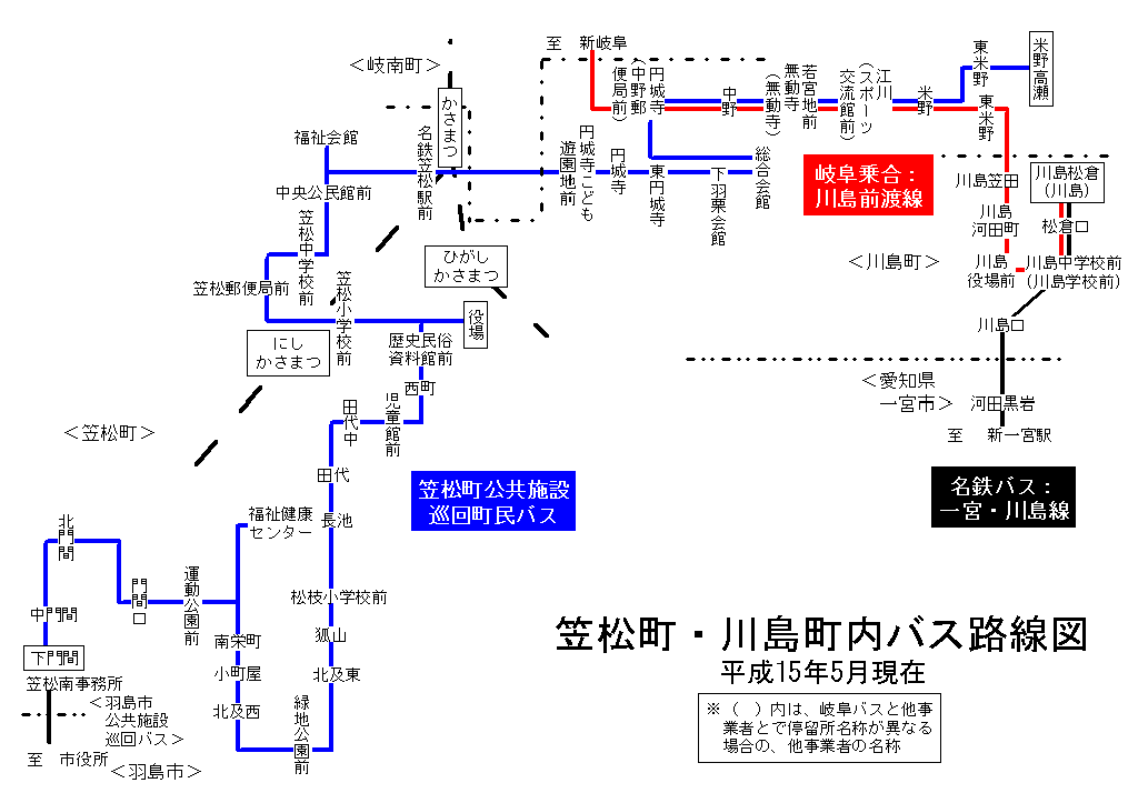 笠松町・川島町内 バス路線図(平成16年7月16日まで)