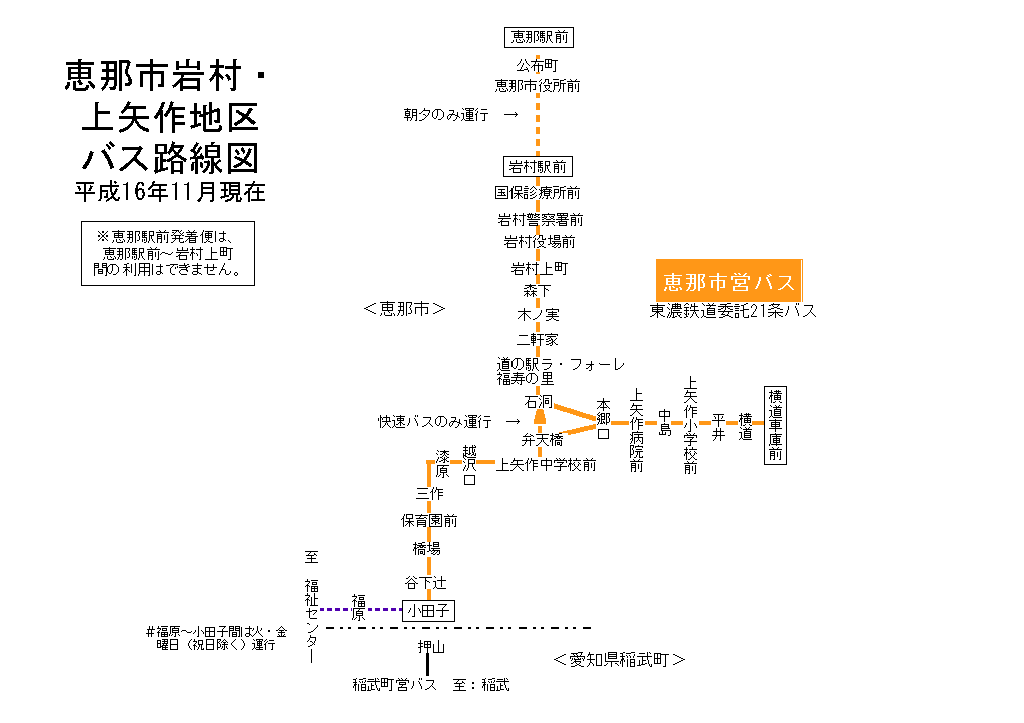 恵那市岩村・上矢作地区バス路線図(平成17年5月15日まで)