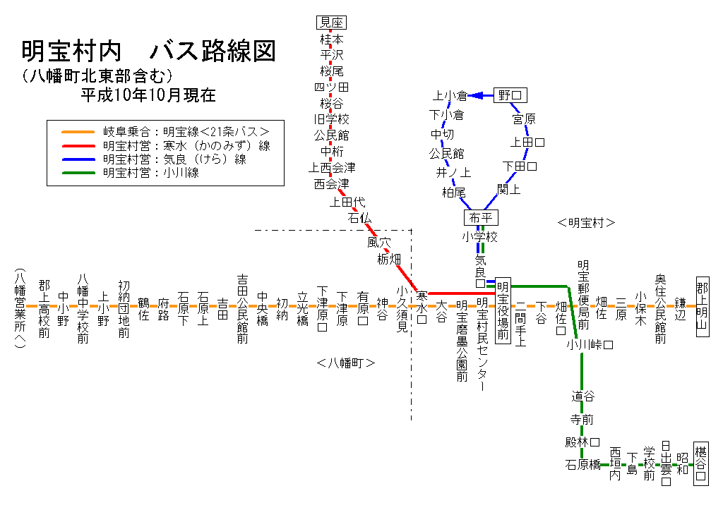 明宝村・八幡町北東部 バス路線図(平成11年9月30日まで)