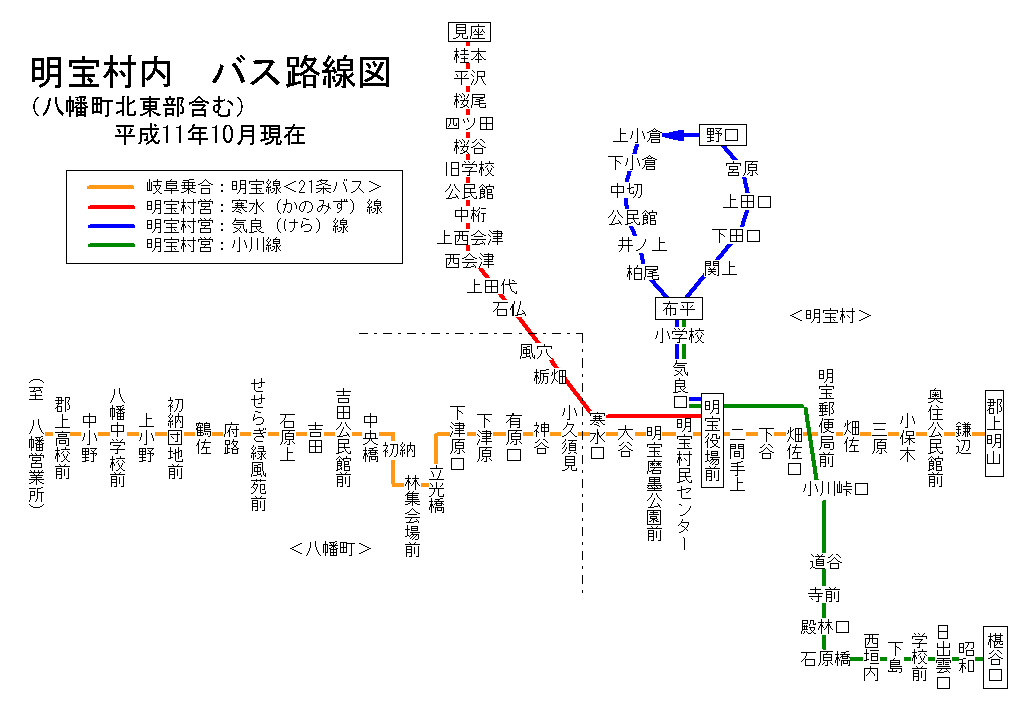 明宝村・八幡町北東部 バス路線図(平成13年3月31日まで)