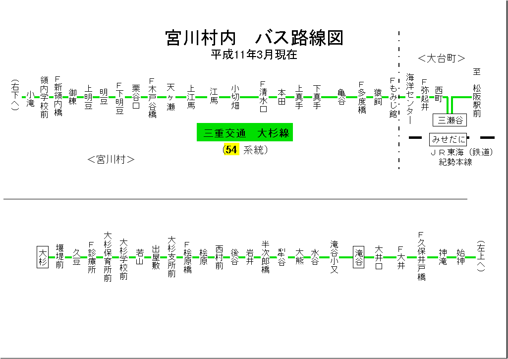 三重県・宮川村内 バス路線図(平成11年3月まで)
