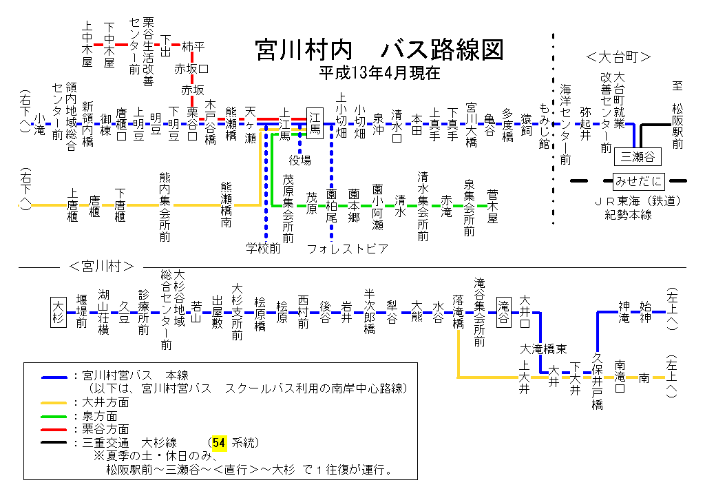 三重県・宮川村内 バス路線図(平成13年10月まで)