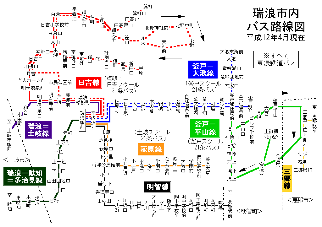 瑞浪市内 バス路線図(平成13年3月31日まで)