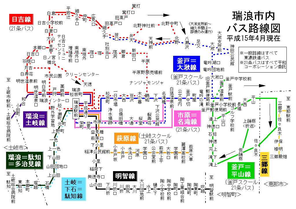 #03/04/01より、瑞浪市コミュニティバス(平和コーポレーション委託、21条バス)が大幅改編。