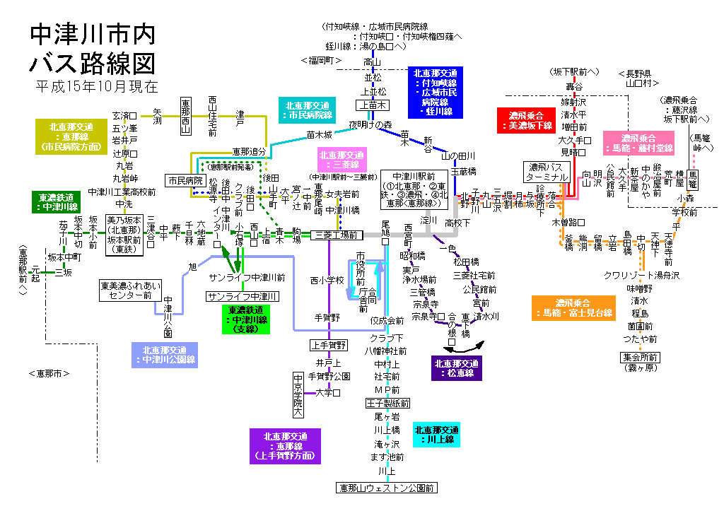 #02/10/01より、北恵那交通・広域市民病院線(付知峡口〜中津川駅前〜市民病院)が運行開始。