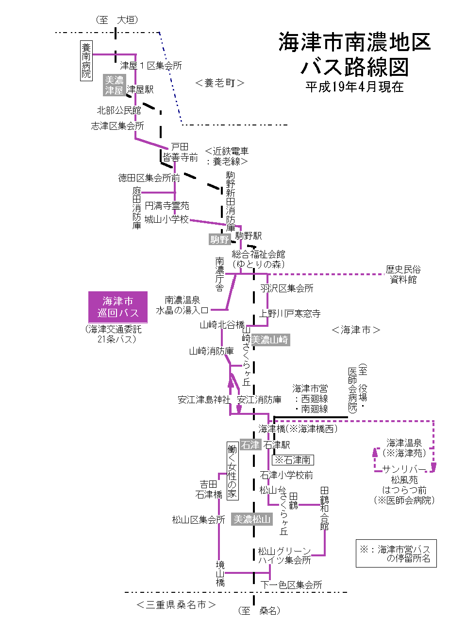 海津市南濃地区 バス路線図(平成21年3月31日まで)