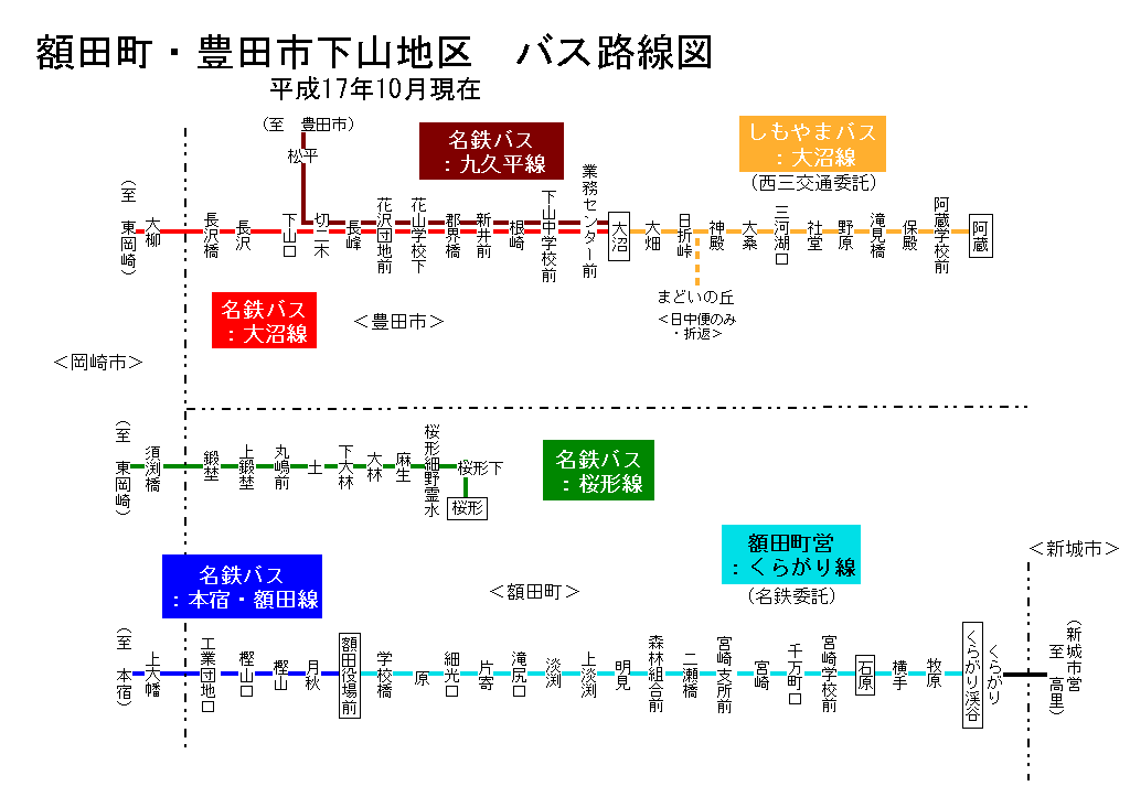 額田町・豊田市下山地区 バス路線図(平成17年12月31日まで)