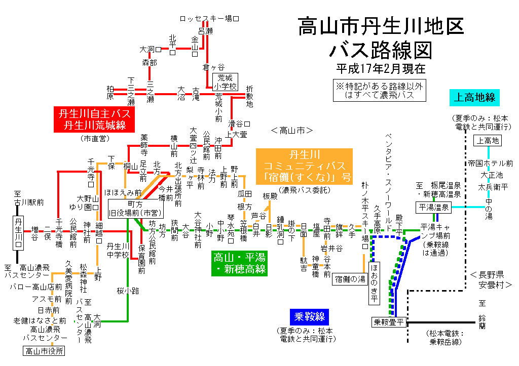 高山市丹生川地区 バス路線図(平成19年3月31日まで)