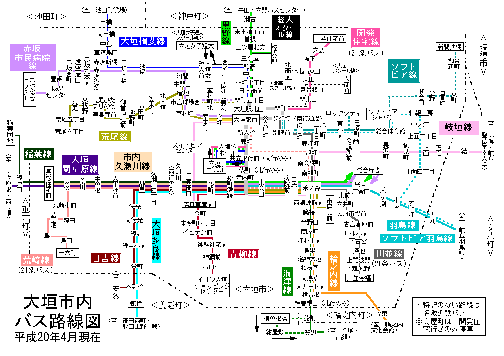 大垣市中心部 バス路線図(平成20年9月30日まで)