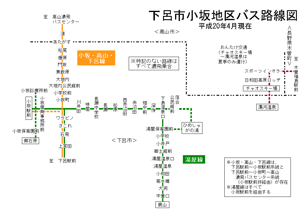 下呂市小坂地区 バス路線図(平成22年3月31日まで)