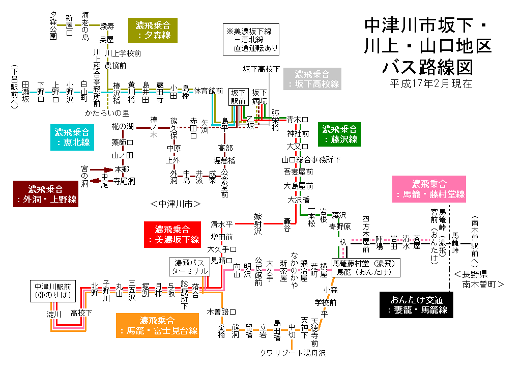 平成17年2月12日以前の坂下町・川上村・長野県山口村路線図はこちら