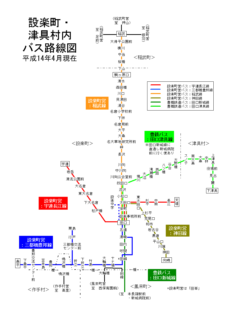 設楽町・津具村内 バス路線図(平成17年9月30日まで)