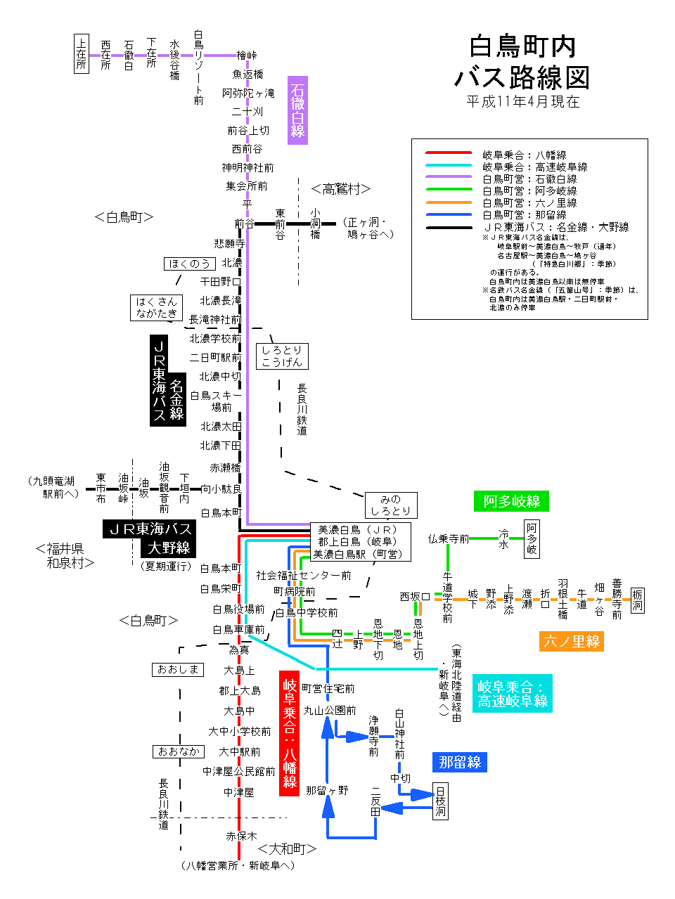 白鳥町内 バス路線図(平成12年3月31日まで)