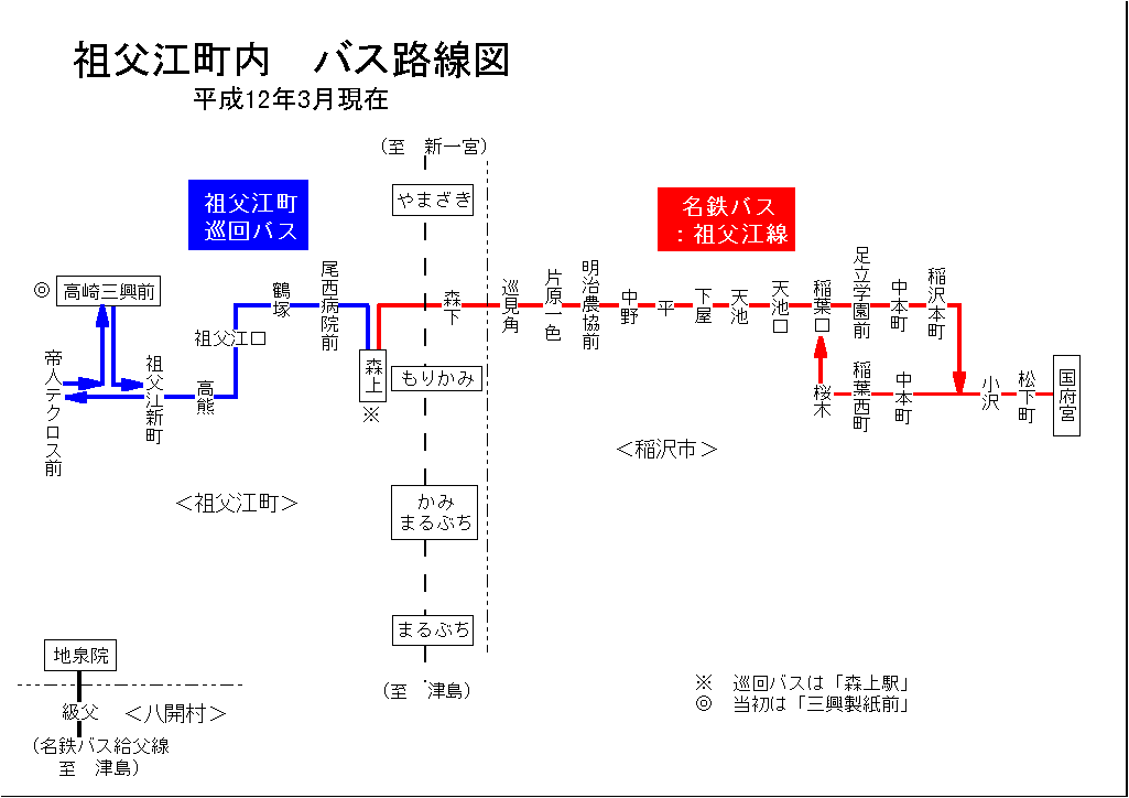 #99/03/31限りで、名鉄バス祖父江線・森上〜三興製紙前が廃止。99/04/01より祖父江町巡回バスに移管。
