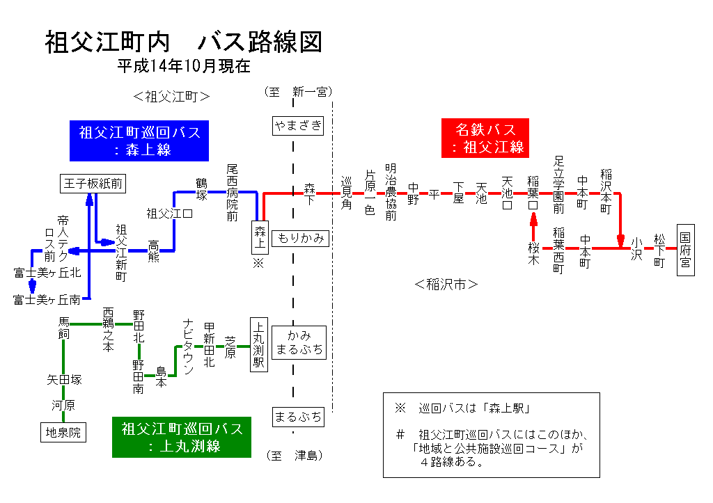 #02/10/01より、祖父江町巡回バス森上線の「高崎三興前」が「王子板紙前」に名称変更。