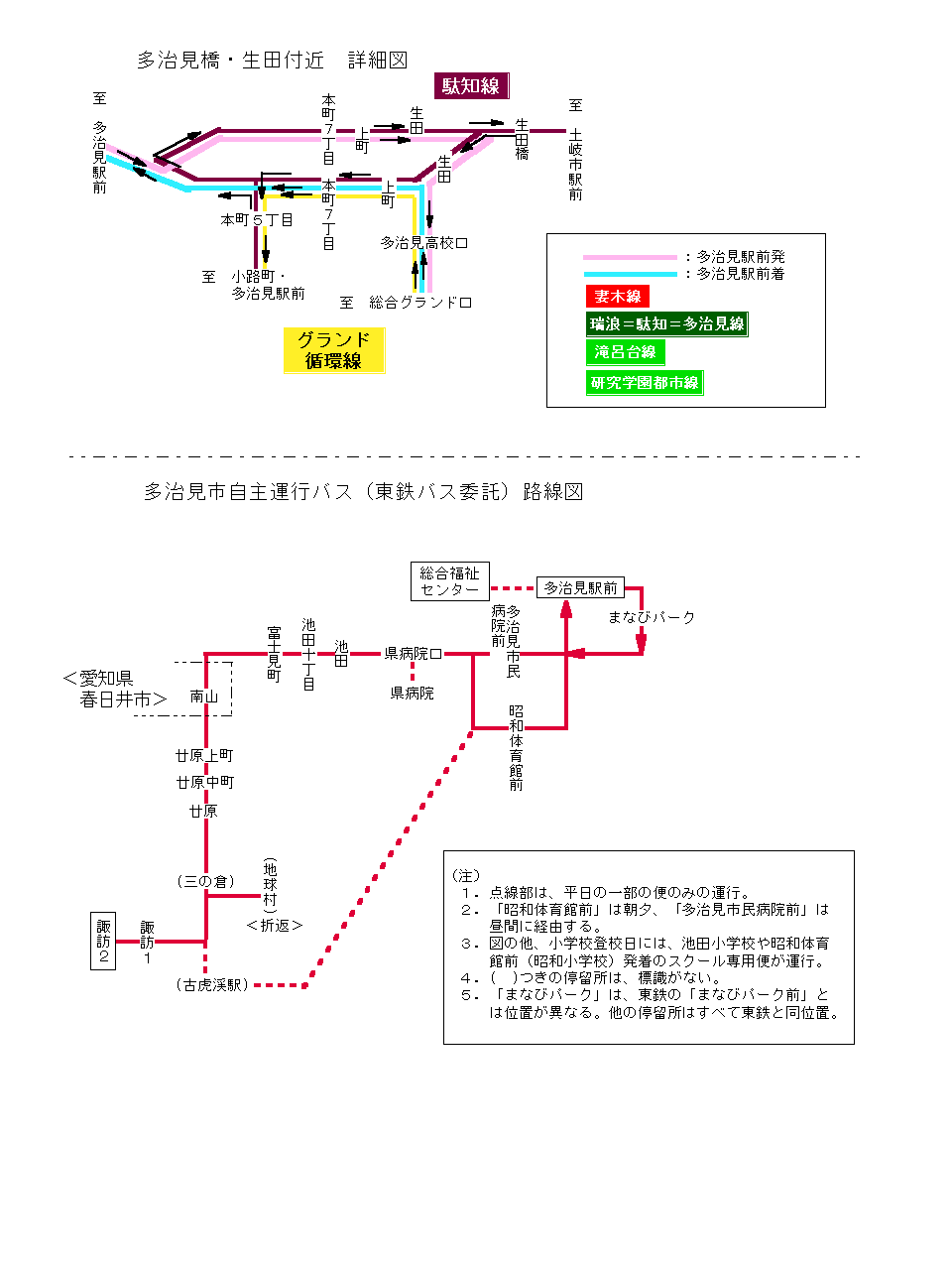 多治見市内バス路線図<多治見橋・生田付近、自主運行バス>