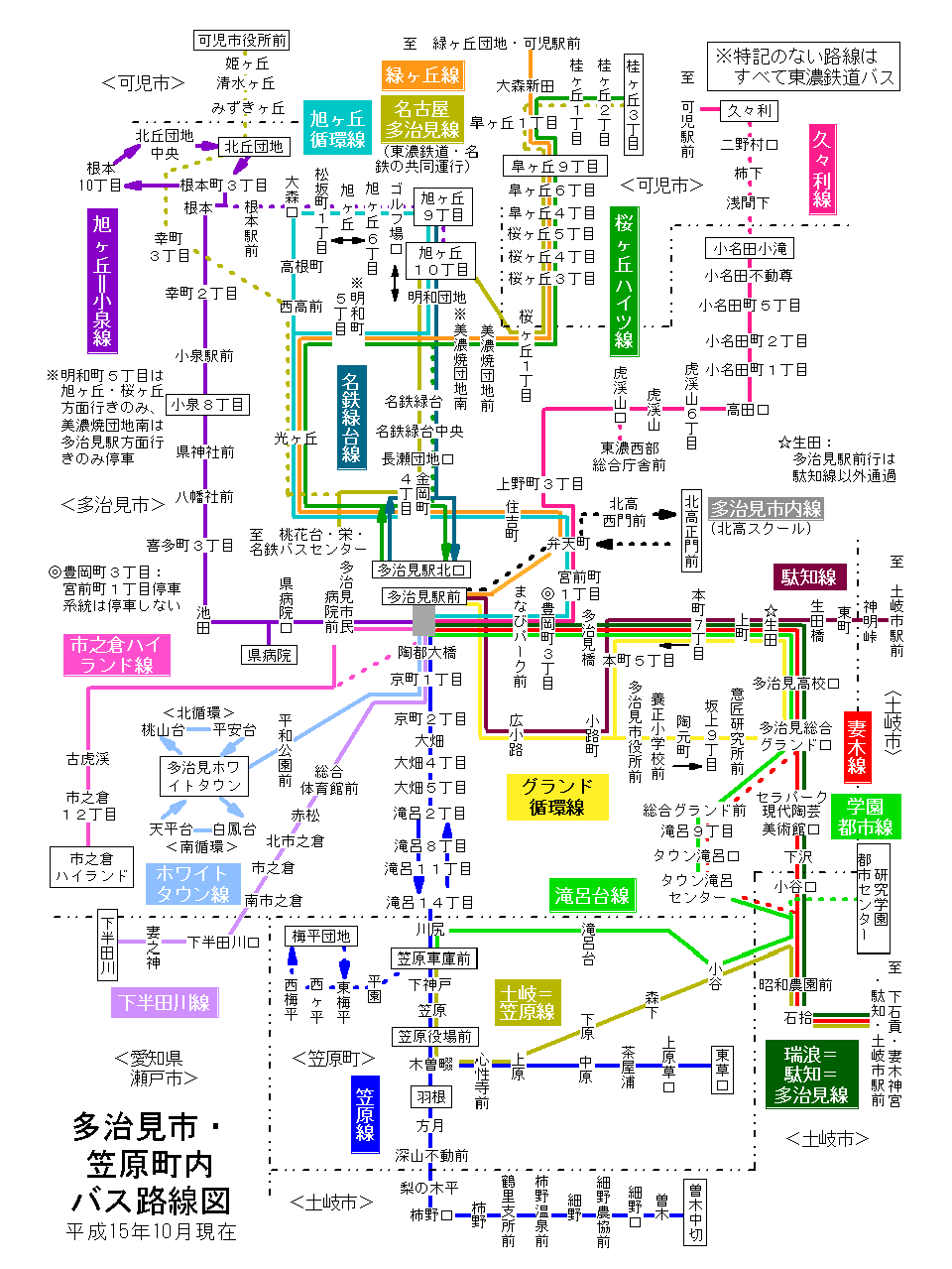 多治見市・笠原町内 バス路線図(平成16年3月31日以前)
