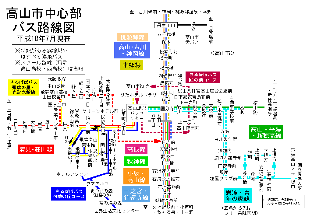 高山市中心部 バス路線図(平成20年3月31日まで)