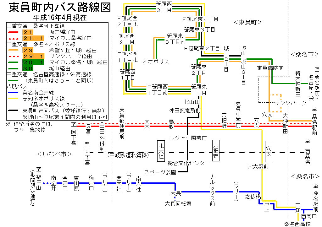 東員町内 バス路線図(平成17年3月26日まで)