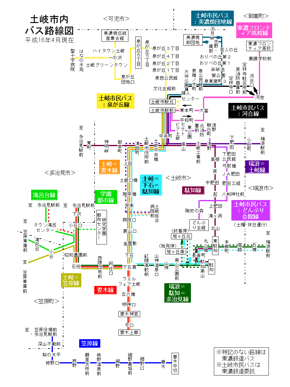 #04/04/01より、土岐市民バス美濃焼団地線・泉が丘線が経路変更。美濃焼団地線はおりべの丘経由に、泉が丘線は聖十字病院経由に変更。