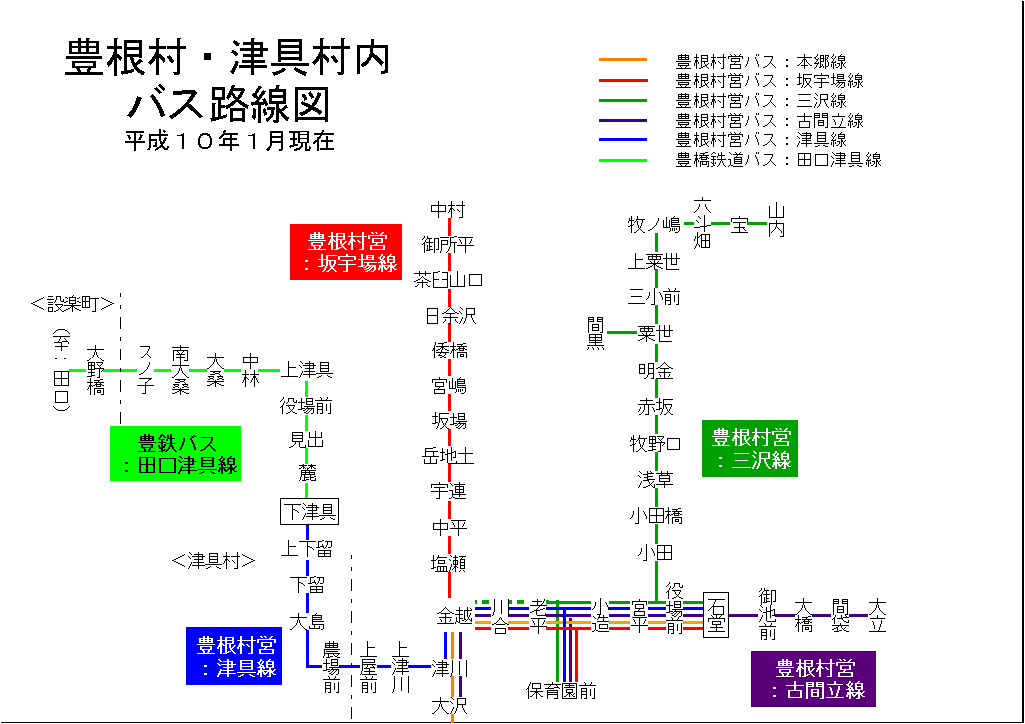 豊根村・津具村内 バス路線図(平成10年3月31日まで)
