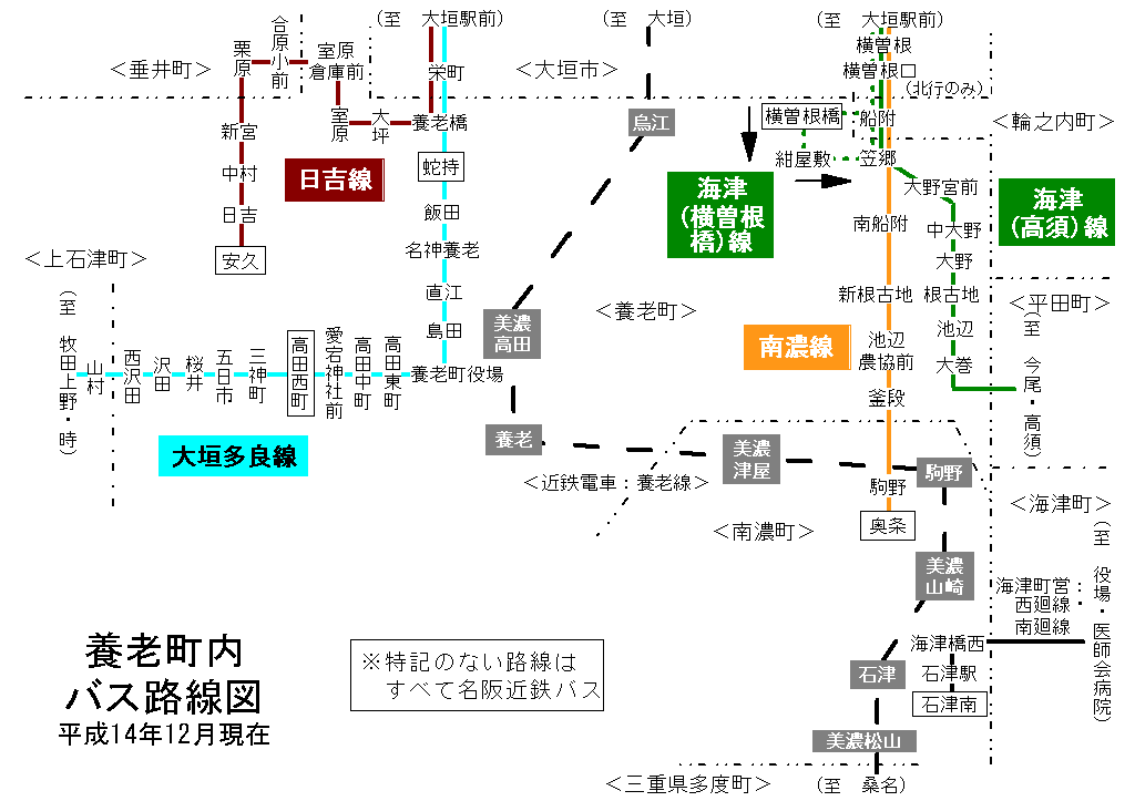 養老町内 バス路線図(平成17年9月30日まで)